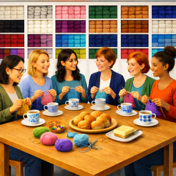 Medbring dit eget projekt – eller lad dig inspirere af garnet og idéerne i butikken.